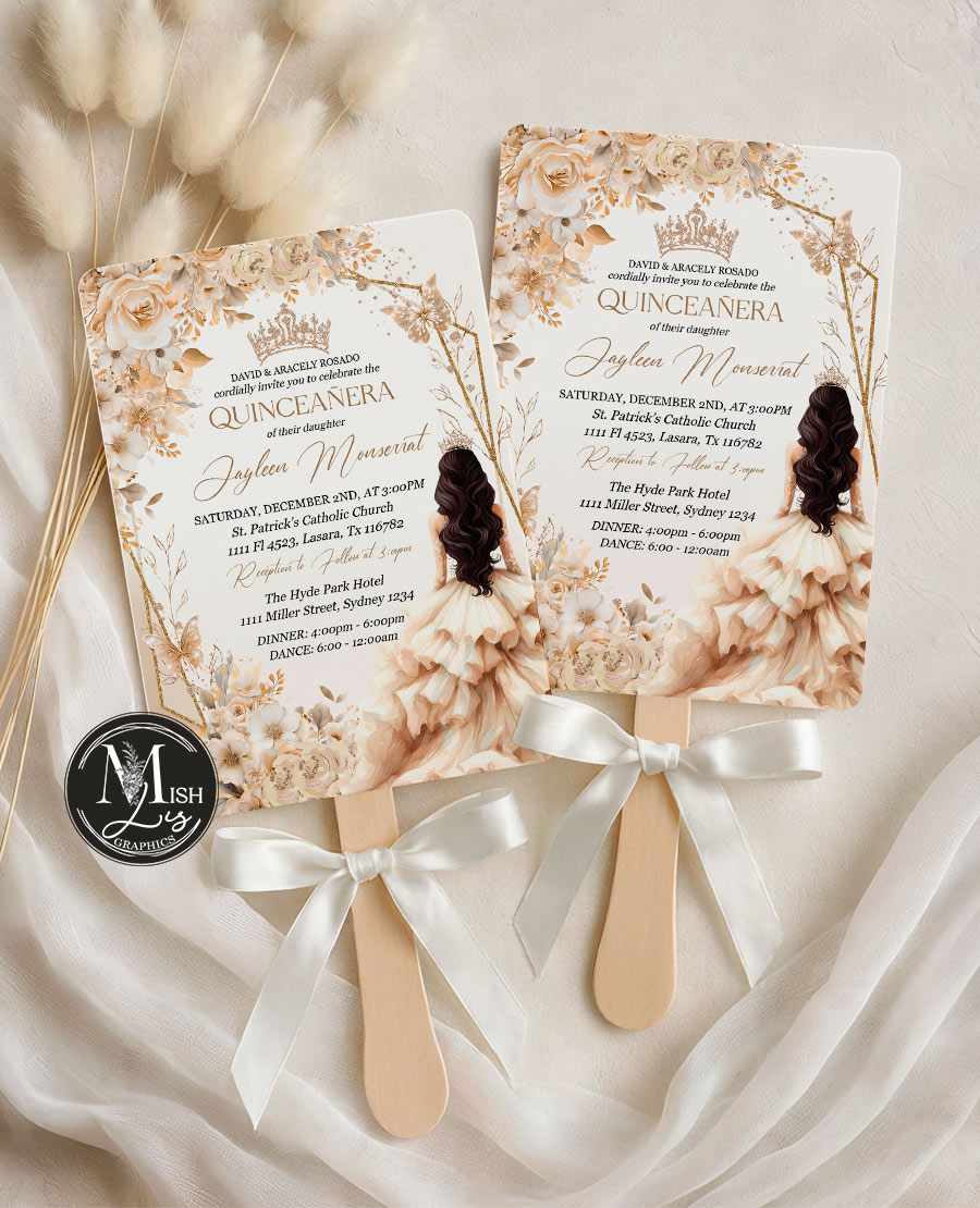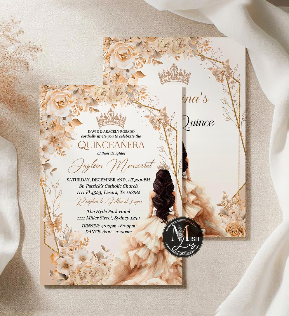 • This listing Beige Champagne Quinceañera Invitation is for the digital files only. No physical items will be shipped to you.