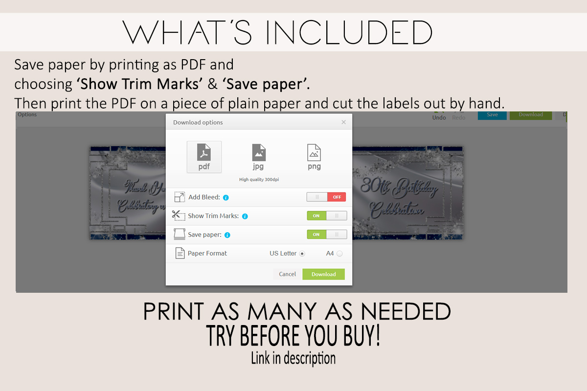 This listing includes an instant download, self-editable template that you edit yourself using your own browser. You will be emailed a link to access your template after purchase within a few minutes. No need to install software or fonts. You can print at home, your local print shop or an online print vendors. Jettemplate offers so many option, save you time by making your own edits and avoids having to wait for file proofs!