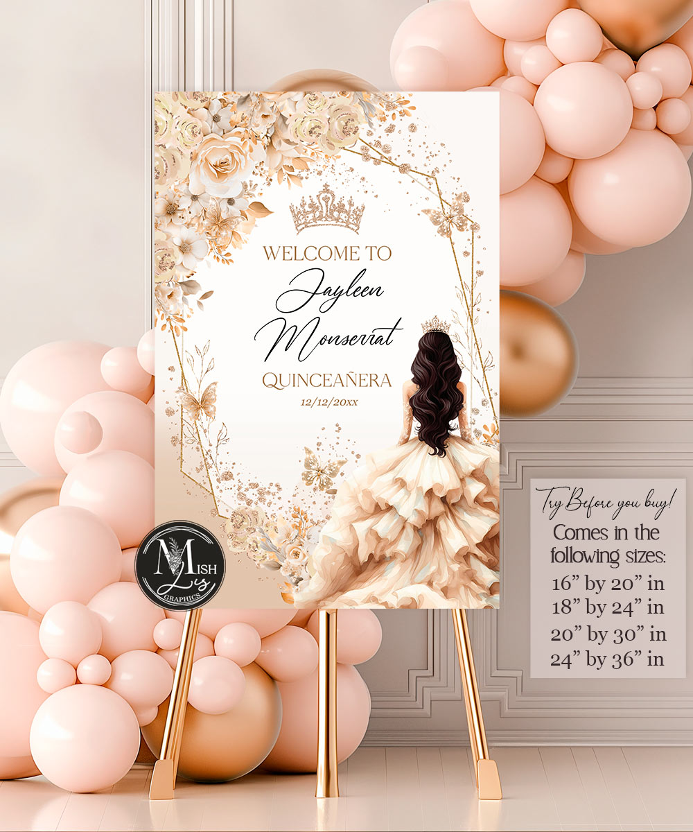 FILE INFORMATION – Champagne Quinceañera Welcome Sign