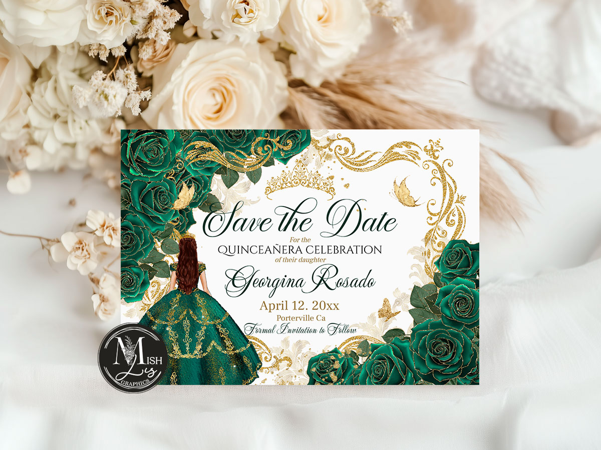 FILE INFORMATION – Emerald Green Quinceañera Save the Date