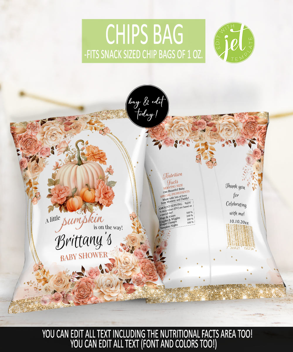 FILE INFORMATION – Pumpkin Baby Shower Chip Bag Template