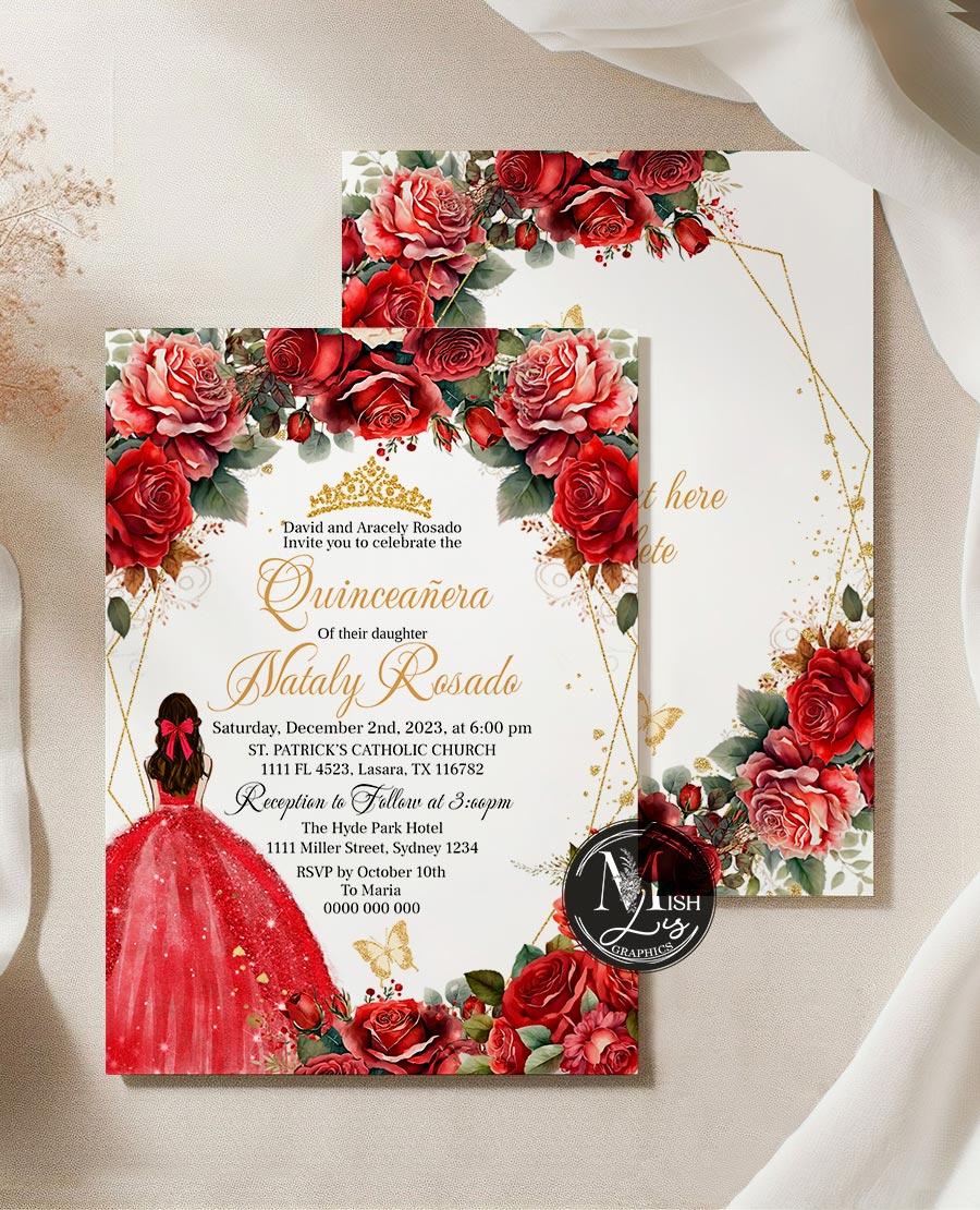 FILE INFORMATION – Red Roses Quinceañera Invitation