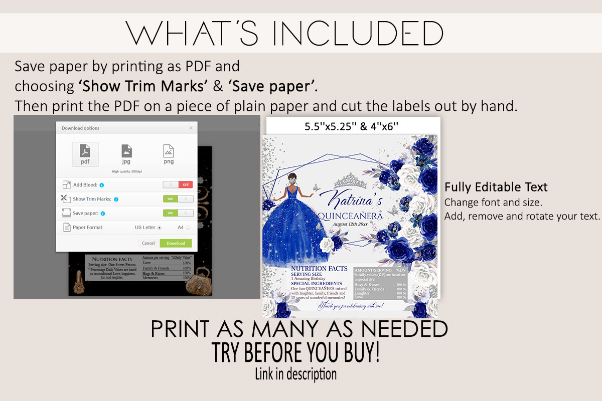 FILE INFORMATION – Royal Blue Quinceañera Chocolate Wrapper