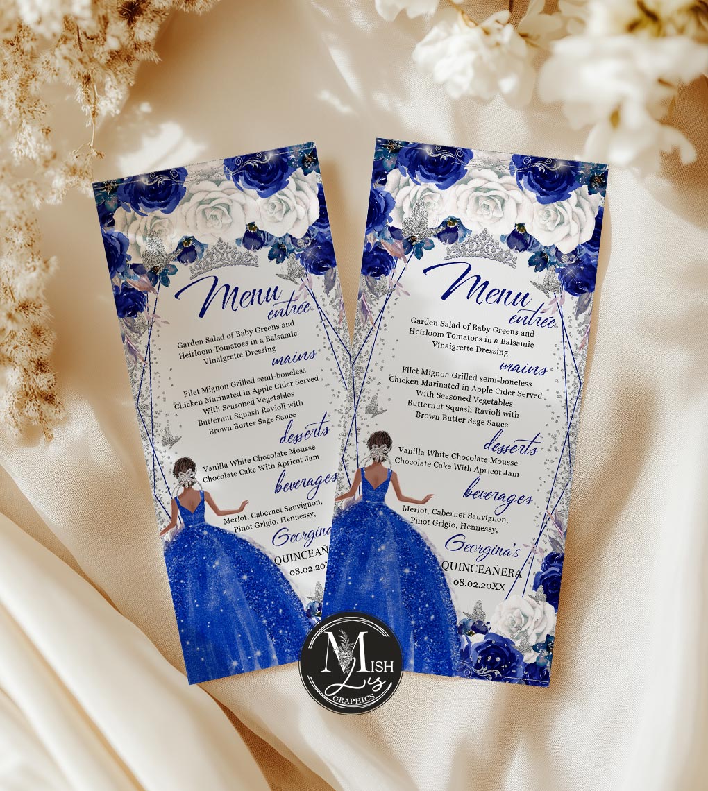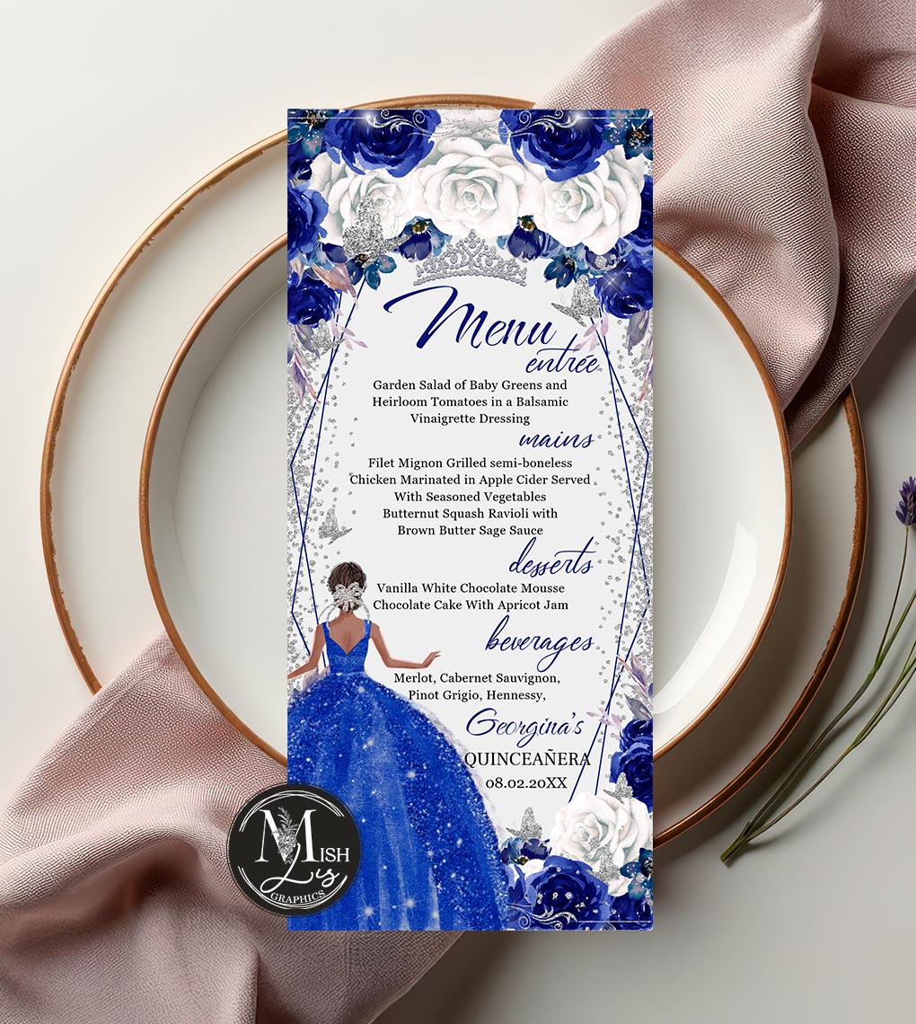 FILE INFORMATION – Royal Blue Quinceañera Menu Template