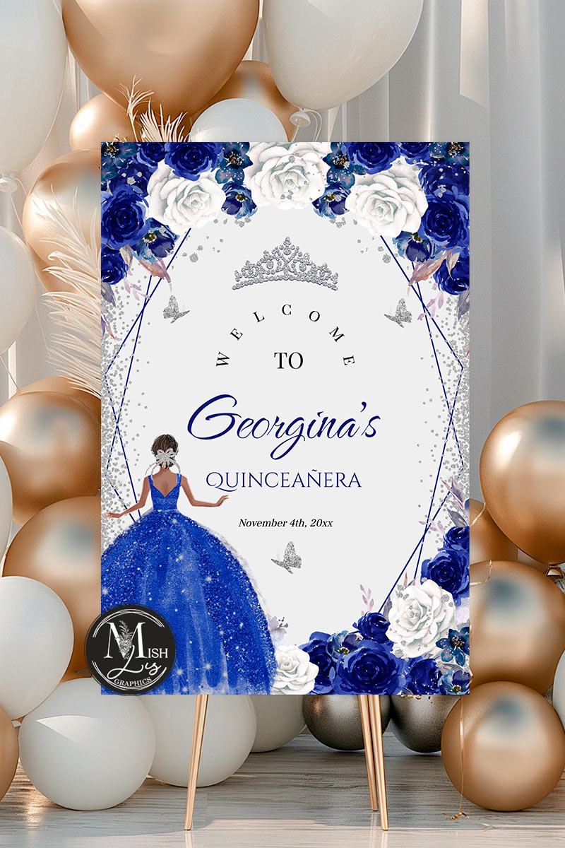 FILE INFORMATION – Royal Blue Quinceañera Welcome Sign