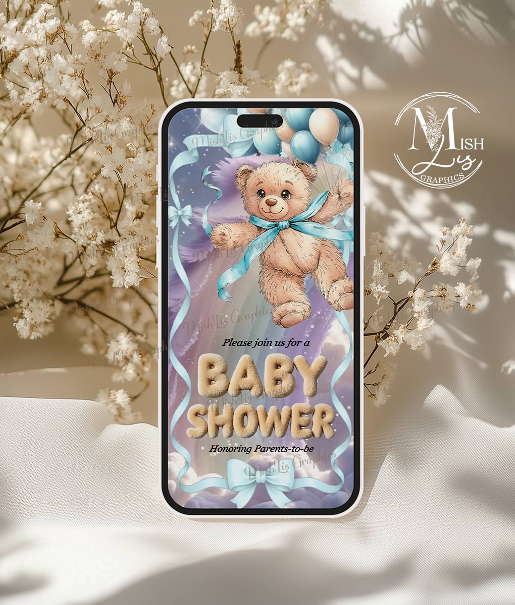 Teddy Bear Baby Shower video invitation is a charming Baby Shower Video Invitation designed for a boy celebration. This digital Blue Teddy Bear Invite features a sweet bear theme and animated elements, perfect for sharing by text, email, or social media.